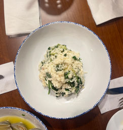 Creamy risotto with sweet and spicy veal sausage, shiitake mushrooms and smoked Mozzarella.